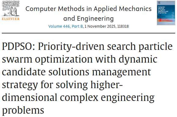 1\] Hu G, He P, Jia H, et al. PDPSO: Priority-driven search particle swarm optimization with dynamic candidate solutions management strategy for solving higher-dimensional complex engineering problems\[J\]. Computer Methods in Applied Mechanics and Engineering, 2025, 446: 118318. ### 5.代码获取 xx ### 6.算法辅导·应用定制·读者交流 xx
