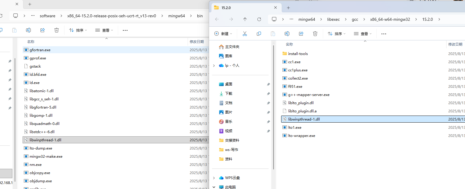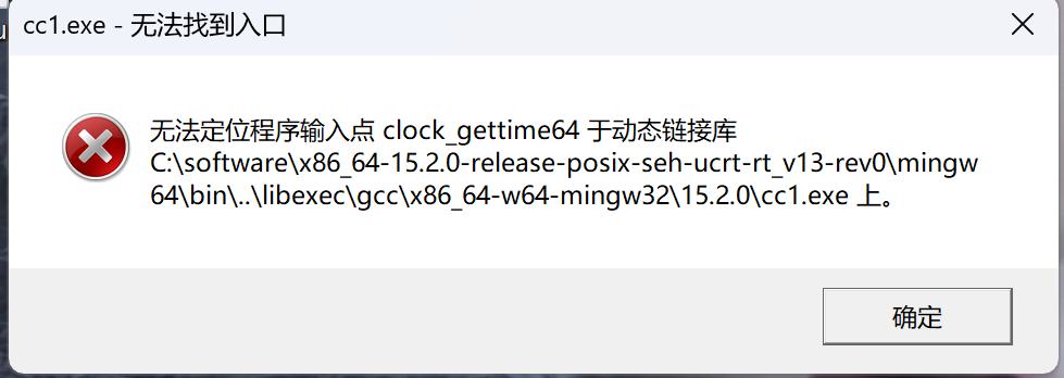 复制bin/libwinpthread-1.dll 到 libexec\gcc\x86_64-w64-mingw32\15.2.0\libwinpthread-1.dll后清空build目录重新生成: