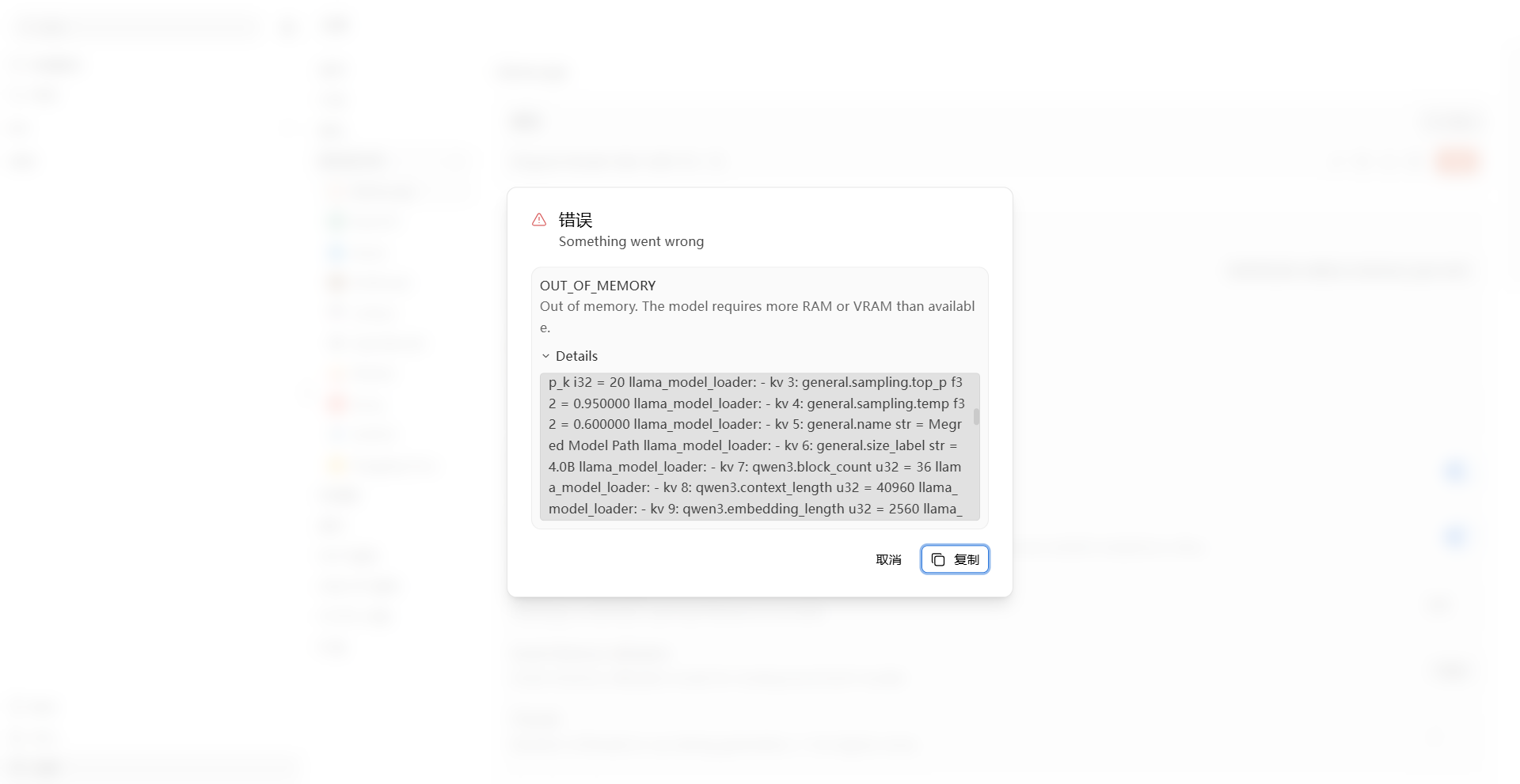 点击开始,你就可以在本机电脑运行你微调的模型。然后然后然后电脑就卡机了...die