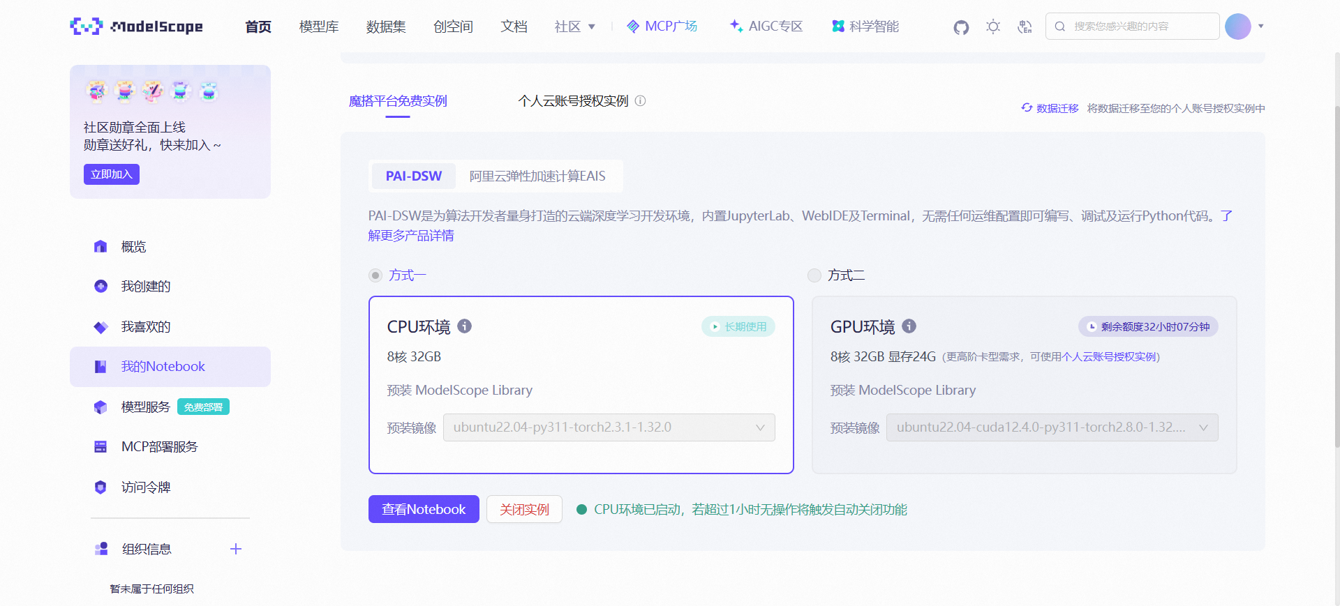 国内模型和数据集开源平台,也提供了免费的云环境实例