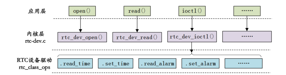 调用驱动设备操作集合rtc_class_ops 中的函数