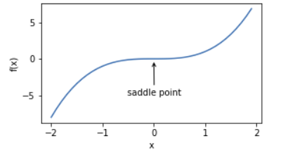 - 当函数的海森矩阵在梯度为零的位置上的特征值有正有负时,该函数得到鞍点。