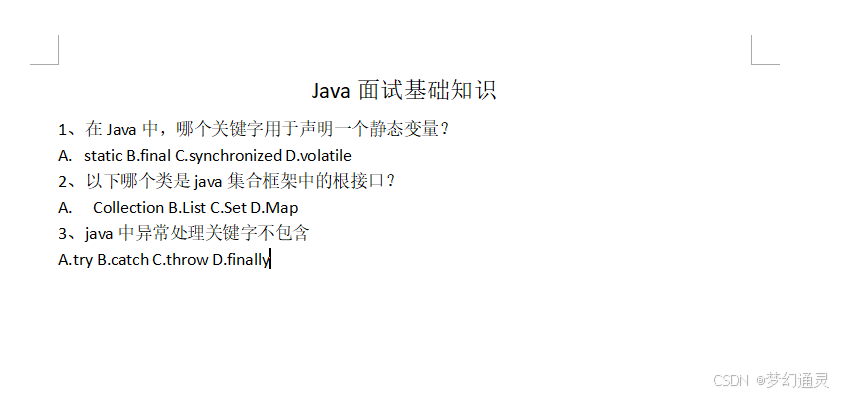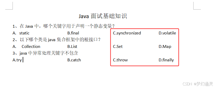 java的面试题ABCD四个选项都在一块,想要把他们分开,美观的展示。