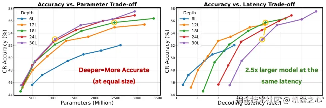 Nemotron-Flash 的大量真实设备实验揭示了小模型容易被忽略的规律:等参数下,越深越强;等延迟下,越宽越快。这两者天然冲突,意味着:深宽比不是一个随手调的超参,而是决定小模型最终能力和延迟的核心结构维度。
