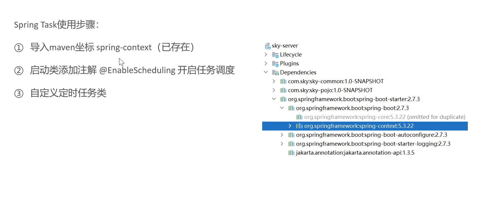 Spring Task是Spring框架提供达到任务调度工具,可按照约定时间自动执行某个代码逻辑
