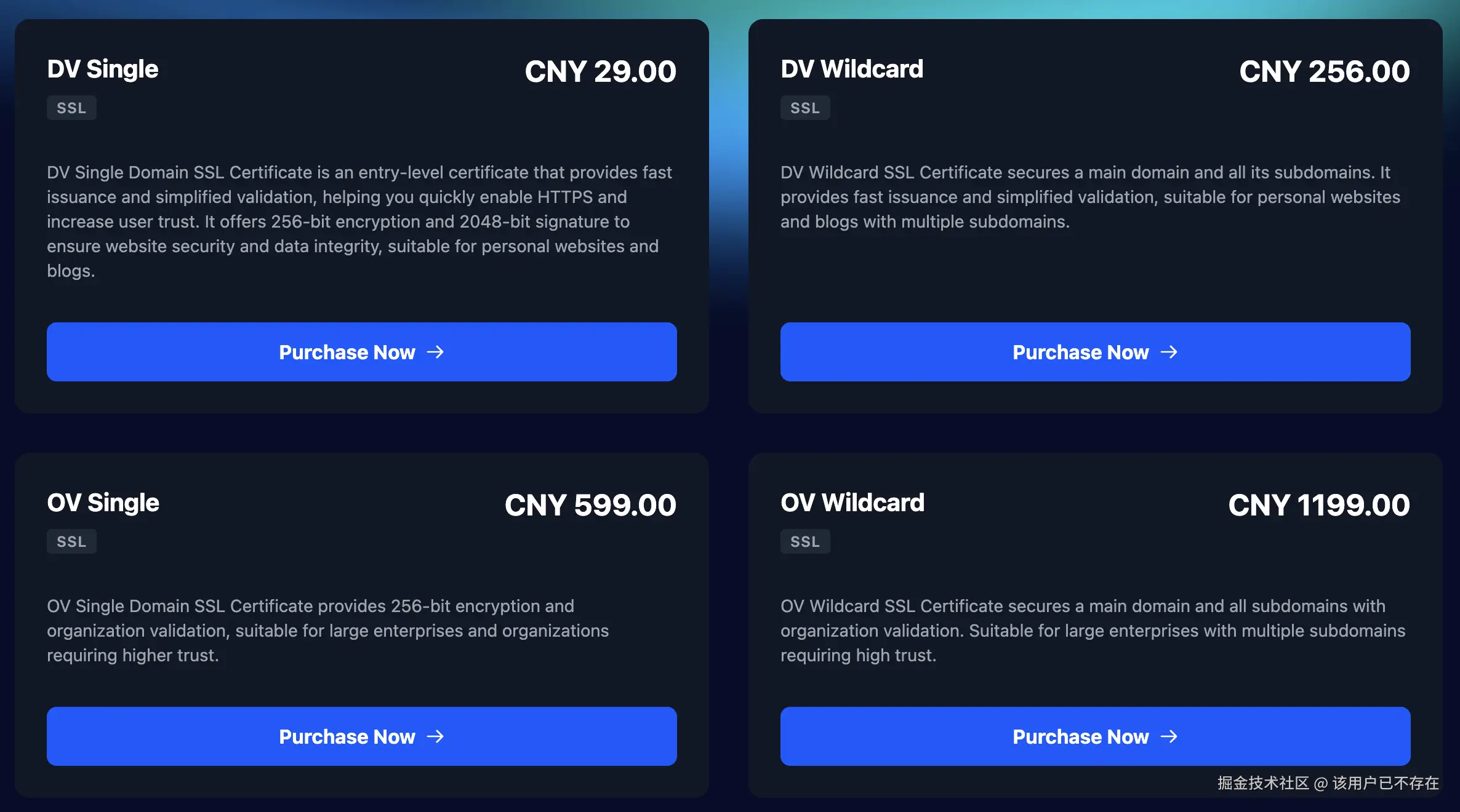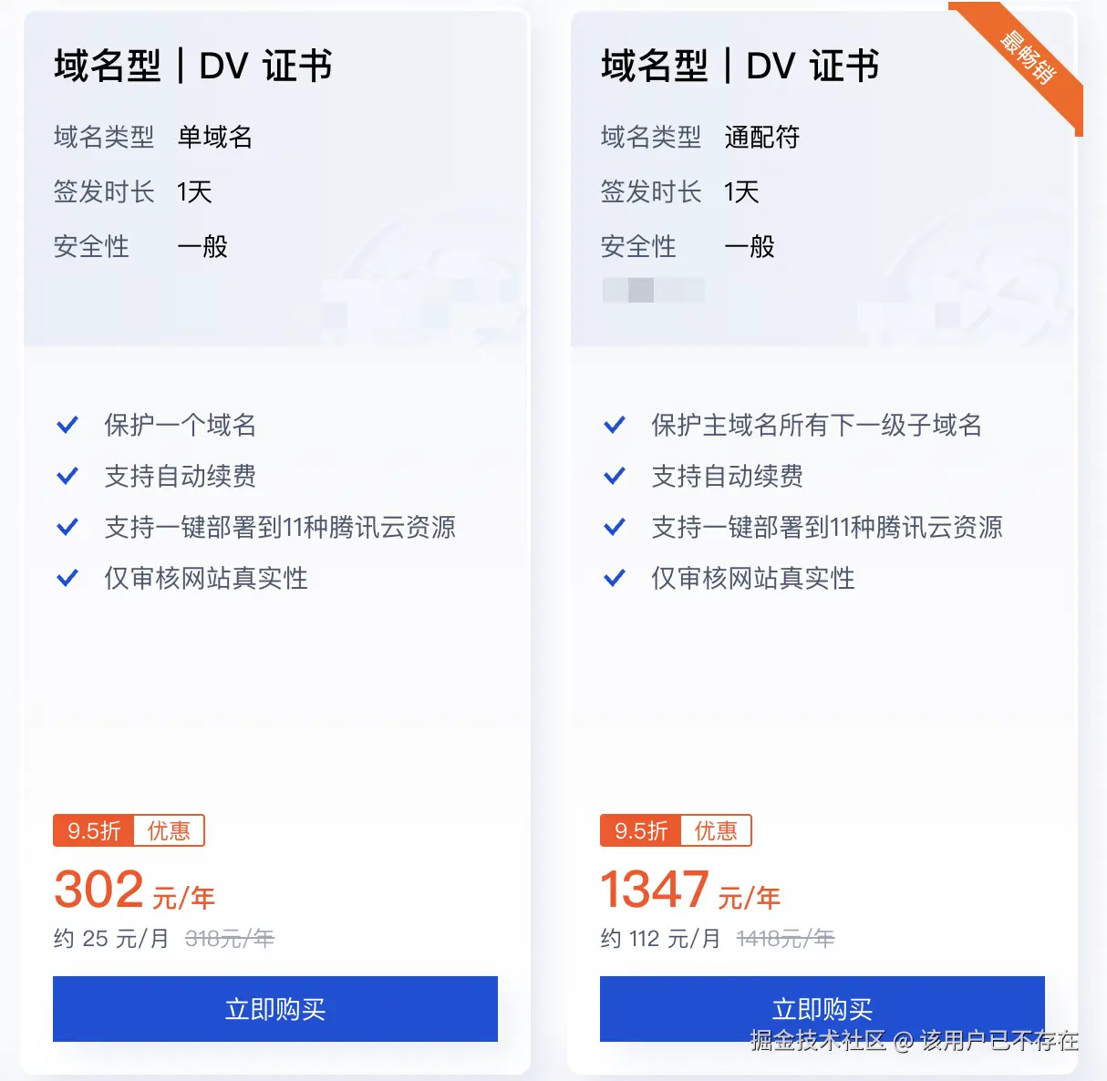 为了规避上述风险,回归 1 年期的长效证书成为最优解。然而,目前市场上付费证书的定价策略普遍较高。主流云厂商的单域名证书价格通常在几百元,而支持无限子域名的通配符(Wildcard)证书价格更是高达千元以上。这种高昂的定价,在很大程度上阻碍了开发者获取稳定的安全服务。