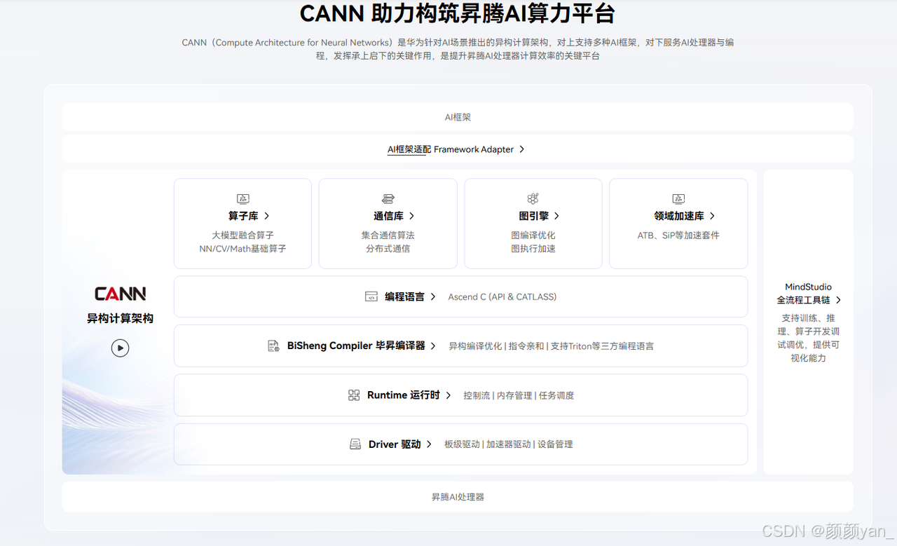 随着人工智能技术的飞速发展,AI算力需求呈现指数级增长。在这样的背景下,如何高效释放硬件算力、简化AI应用开发流程、提升模型训练推理性能,成为了AI开发者面临的核心挑战。华为昇腾推出的CANN(Compute Architecture for Neural Networks)异构计算架构,正是为解决这些痛点而生的关键技术平台。