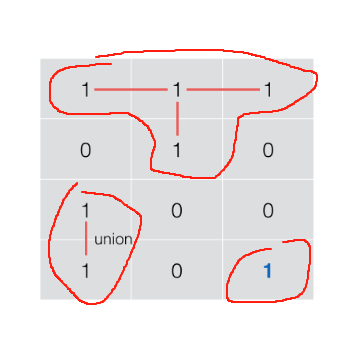 ②对于要处理连接的问题,可以用并查集的方式来处。它的主要思想是把相邻的节点的根节点都设置为同一个,这样就算标记它们是同一个节点了。