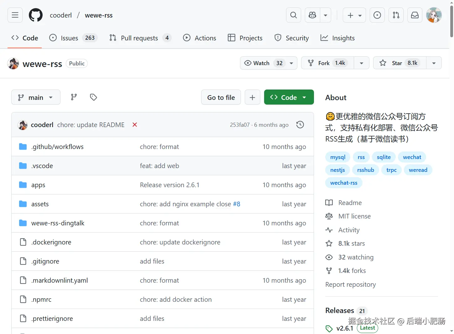 WeWe-RSS 是一款专注于微信公众号内容聚合的工具,核心功能是将微信公众号文章转化为标准化 RSS 订阅源,方便用户通过第三方阅读器高效获取和管理公众号内容。仓库地址: github.com/cooderl/wew...