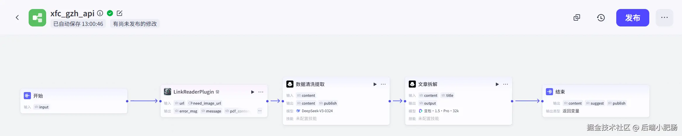 Coze工作流也给大家看一下全貌,Coze工作流的运行逻辑为: