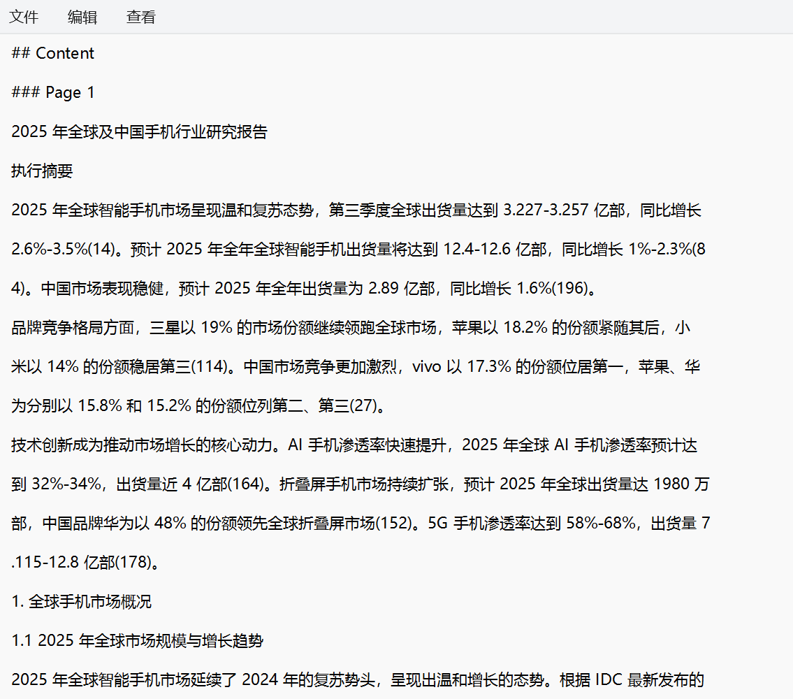 下面以一份PDF行业报告为例,咱们用这个工具去提取文本和表格,速度非常快。