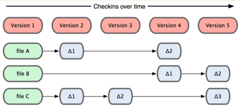Git并不保存这些前后变化的差异数据。