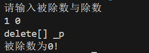 throw string("除数为0!"); // 抛出const char*类型的异常