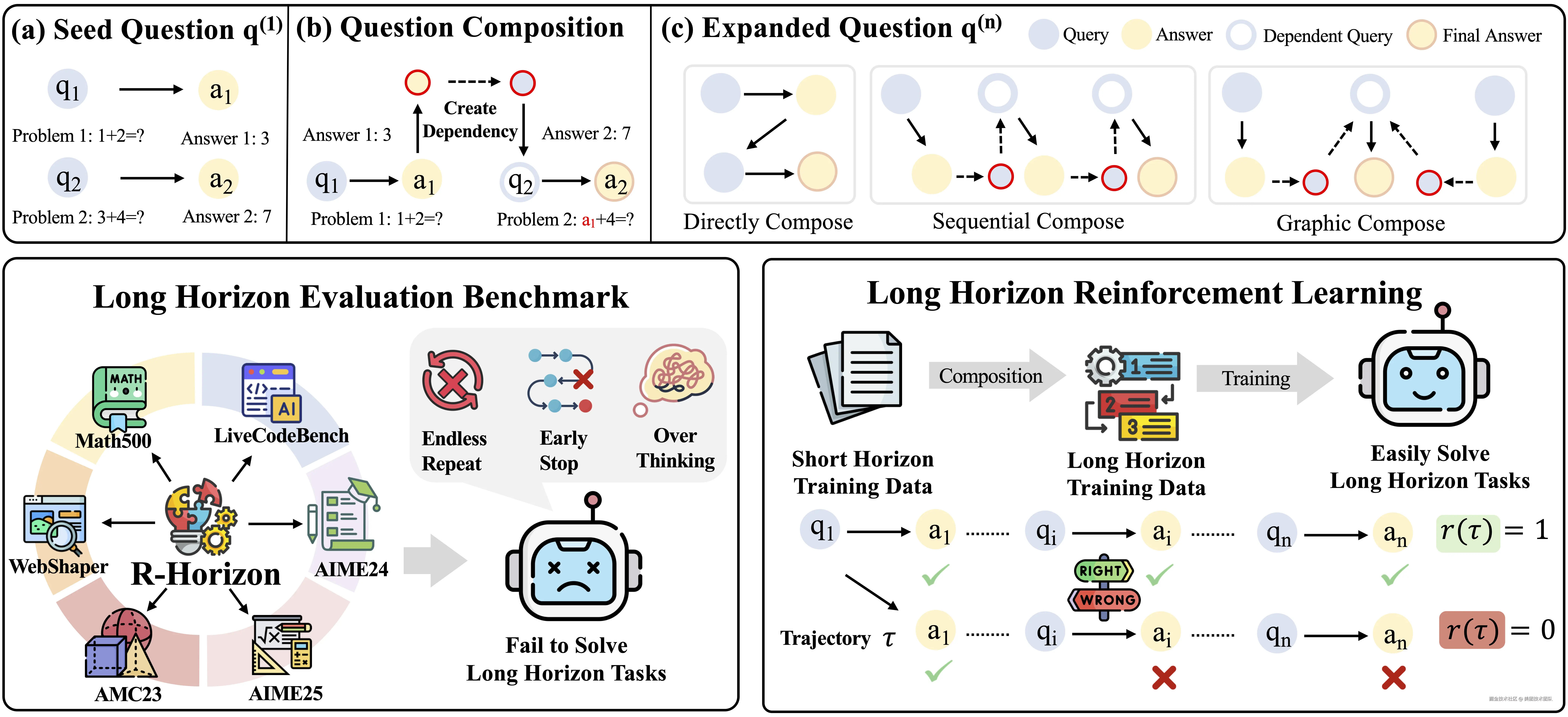 复旦大学与美团 LongCat 联合推出 R-HORIZON------首个系统性评估与增强 LRMs 长链推理能力的评测框架与训练方法。