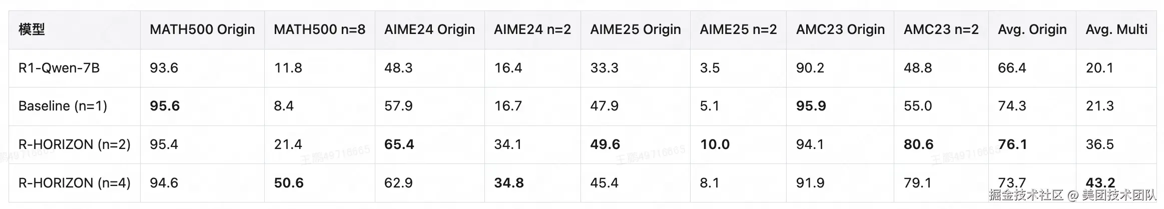 实验结果显示:R-HORIZON 训练不仅显著提升长链任务表现,单问题性能也大幅增强!