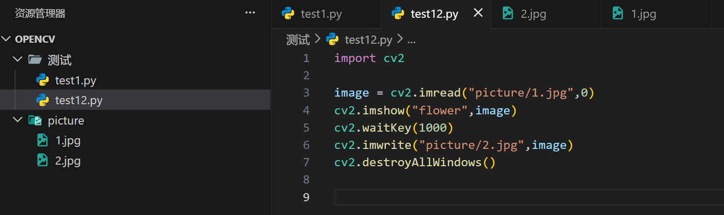 二是为了能够正常显示图像,要在 cv2.imshow()方法后紧跟着cv2.waitKey()方法;