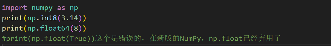 这里要注意,float_ 已经被叉出NumPy了,用的是float64替代