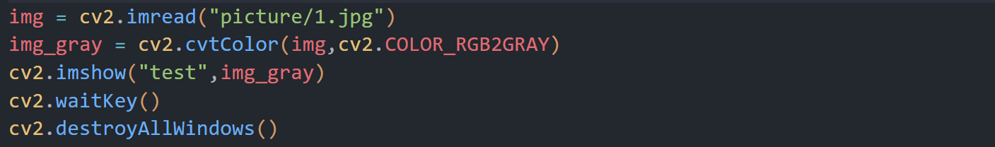 注意:当图像从BGR色彩空间转换到GRAY色彩空间时,常用的色彩空间转换码是 cv2.COLOR_BGR2GRAY。