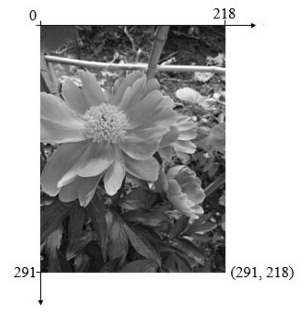 说明 图4.1在水平方向的像素是219个,与其对应的是x轴的取值范围,即0~218;同 理,在垂直方向的像素是292个,与其对应的是y轴的取值范围,即0~291。