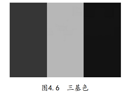 如图4.6所示,人眼能够感知红色、绿色和蓝色3种不同的颜色,因此把这3种颜色称 作三基色。如果将这3种颜色以不同的比例进行混合,人眼就会感知到丰富多彩的颜色。