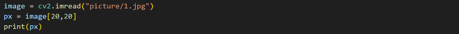 现使用print()方法打印这个 像素,将得到这个像素的BGR值,代码如下: