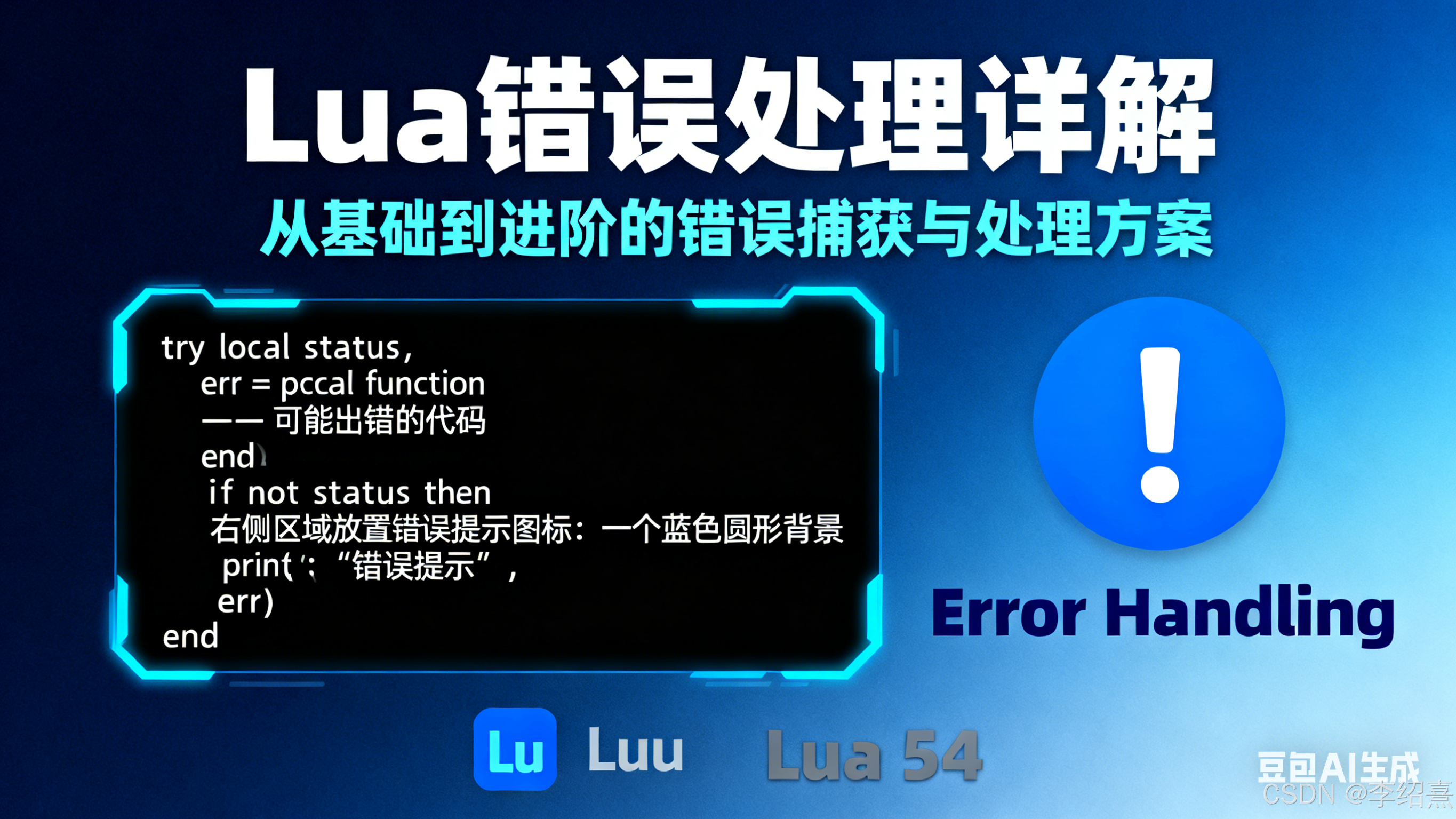 错误处理是Lua程序设计中非常重要的一部分。通过本文件介绍的各种错误处理机制,你可以编写更健壮、更可靠的Lua程序。在实际开发中,应根据具体场景选择合适的错误处理策略,平衡程序的健壮性和开发效率。