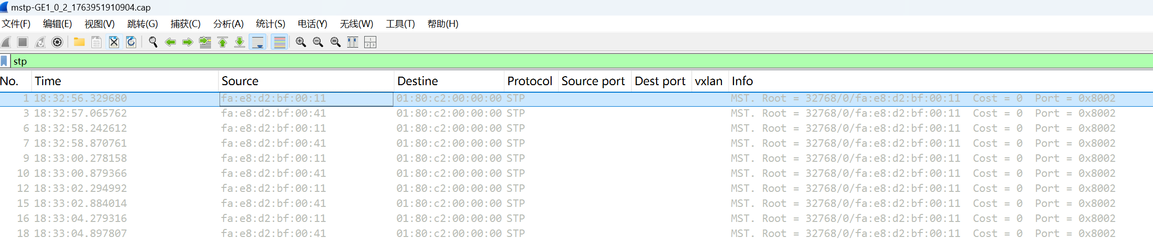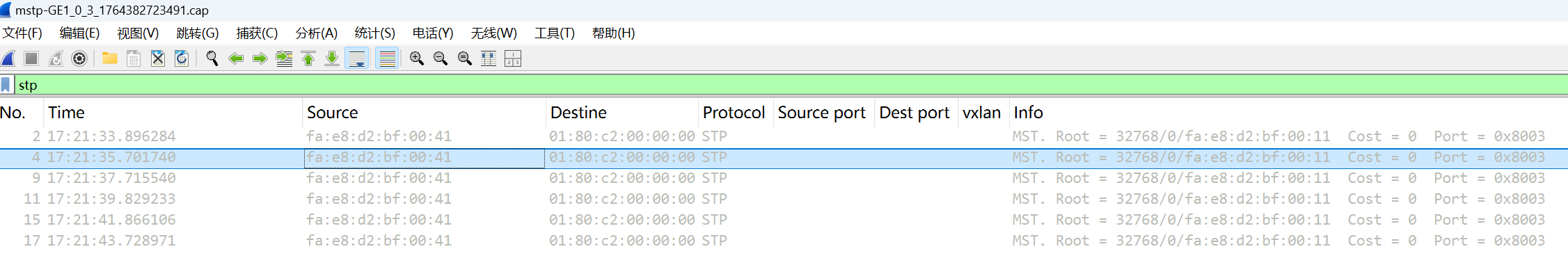 这是一份非常精彩的抓包数据,它完美地佐证了我们之前关于 MSTP 域内多拓扑 与域间单拓扑的理论分析。