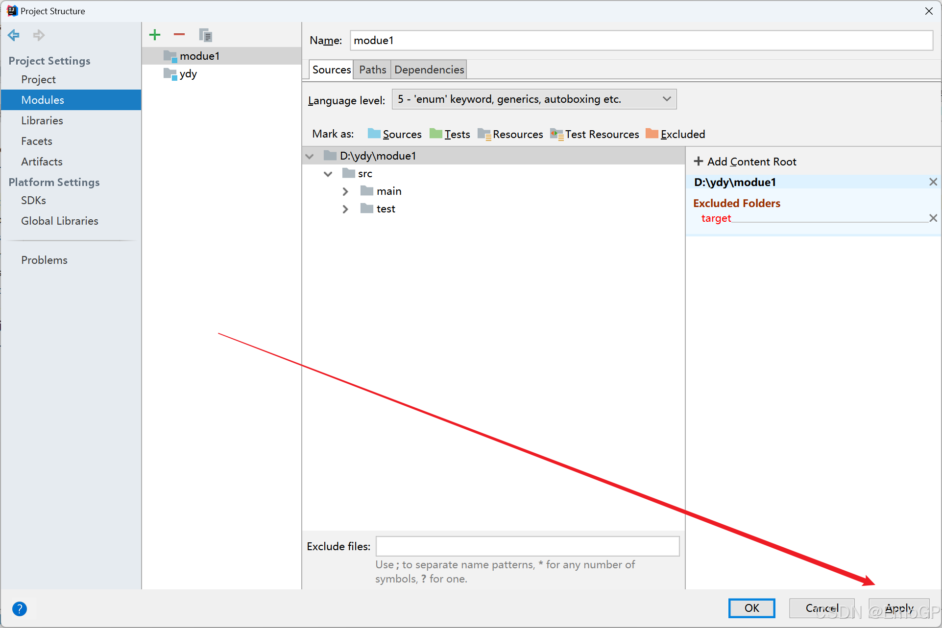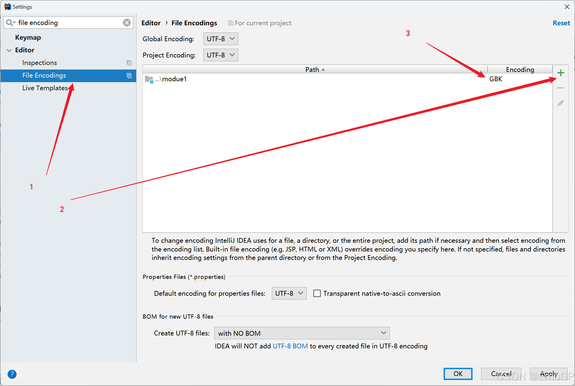 这里将文件都放入module1模块中,并将其编码设置为GBK