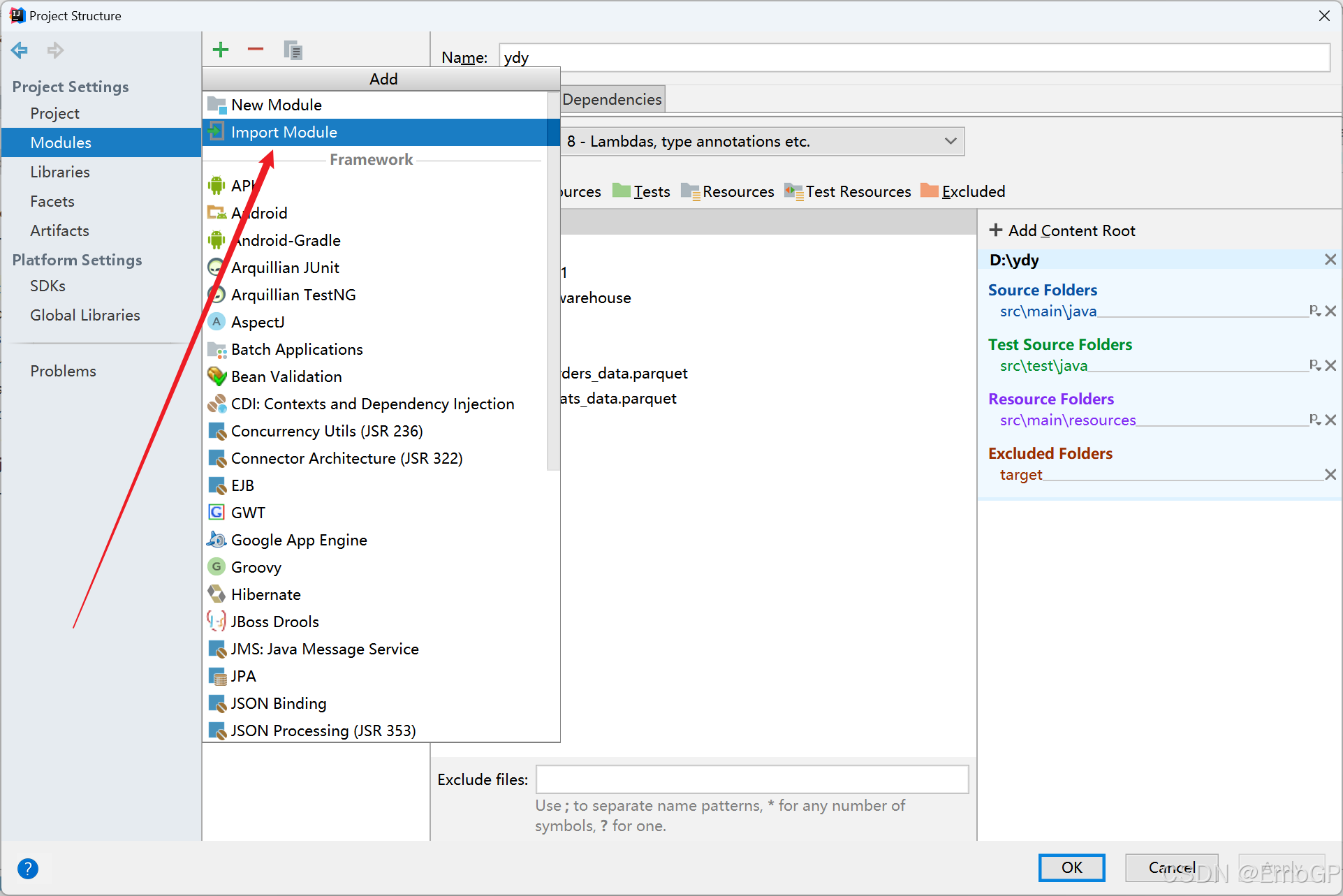 project(工程) ------ module(模块)------ package(包)------class(类)