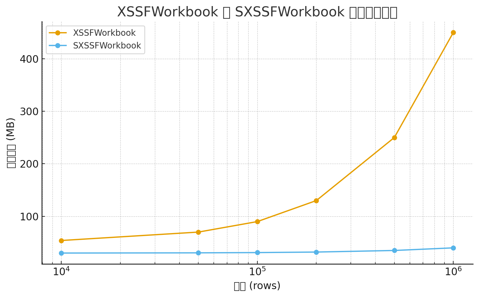 传统XSSFWorkbook与SXSSFWorkbook的内存占用对比图