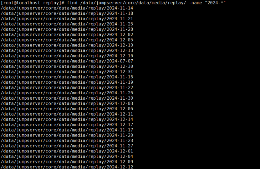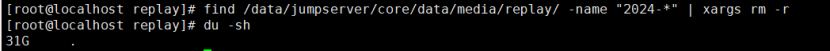 find /data/jumpserver/core/data/media/replay/ -name "2024-*" | xargs rm -r