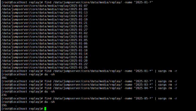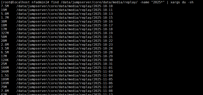 find /data/jumpserver/core/data/media/replay/ -name "2025-*" | xargs du -sh