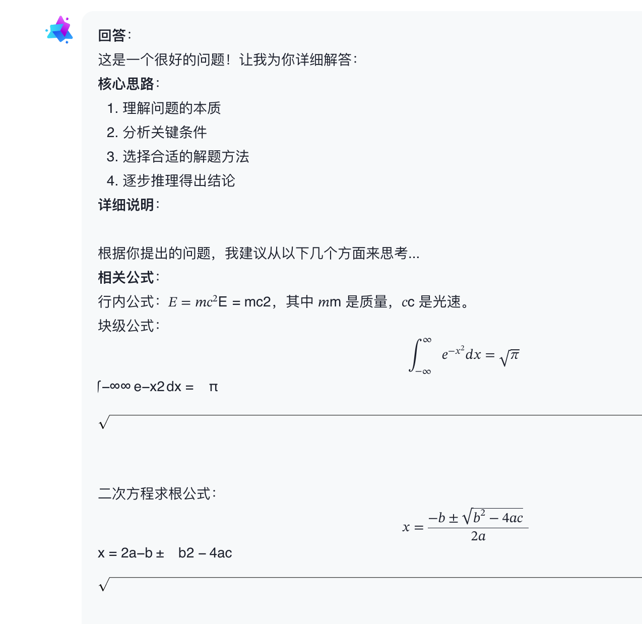 通过 McMarkdownCard 结合 plugin-katex 插件自动渲染公式。