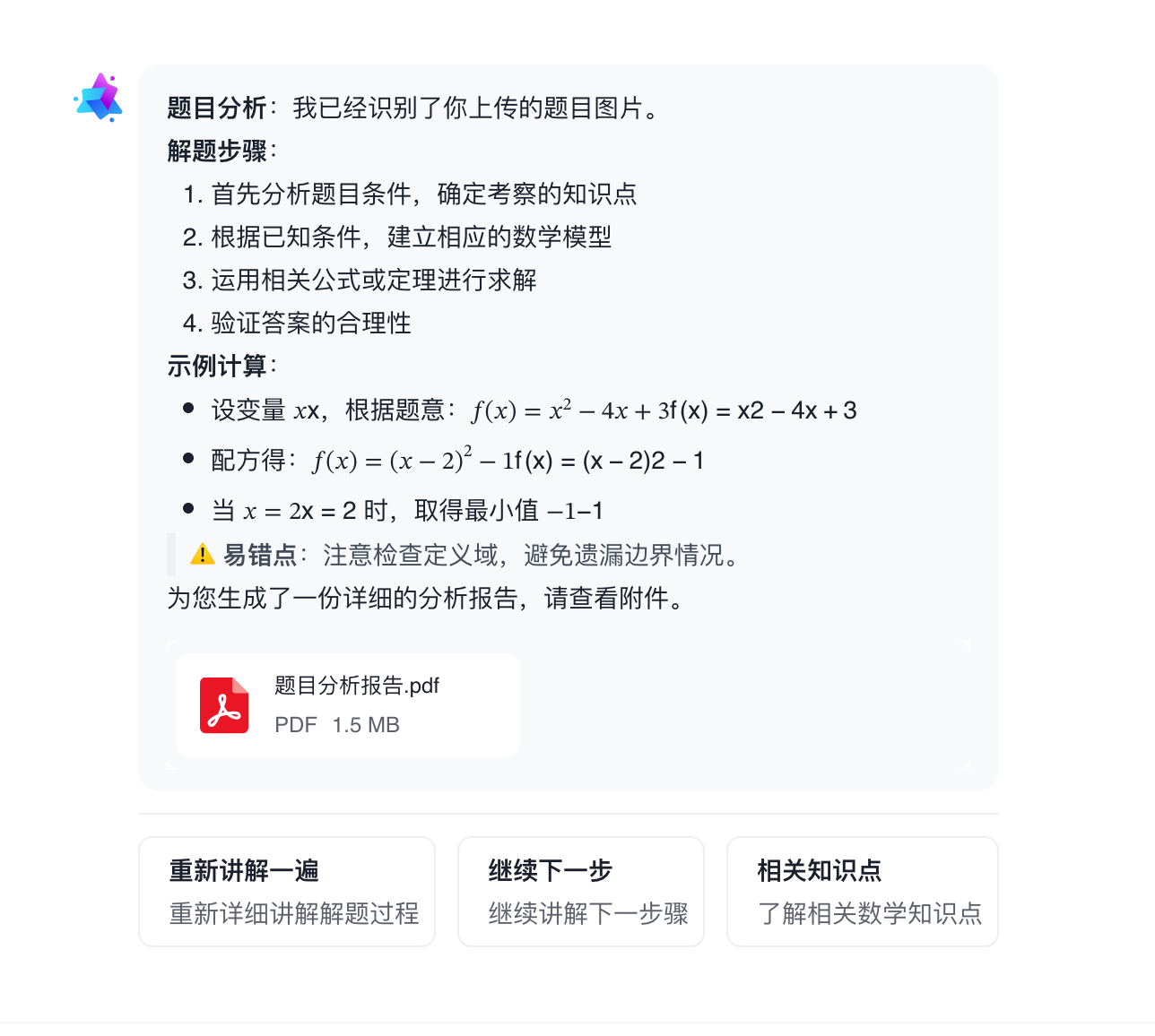 在 K12 与职业教育领域,"拍照搜题"早已成为学生学习的刚需。然而,多数现有产品仅提供答案或简单解析,缺乏引导式教学、错因分析与知识关联,难以真正提升学习效果。