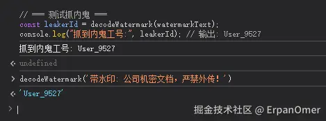 当你把 watermarkText 复制到微信、飞书或者任何地方,那串隐形字符都会跟着一起被复制过去。