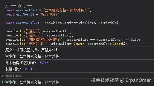 console.log("长度对比:", originalText.length, watermarkText.length);