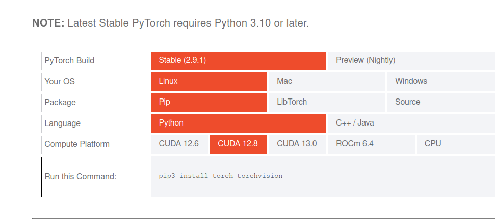 我的cuda版本是12.8,所以直接pip3 install torch torchvision就可以拉!