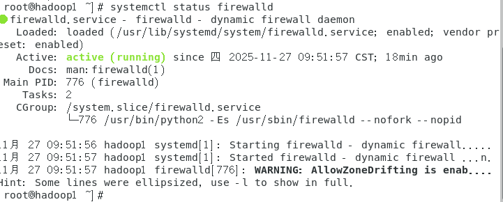 active 表示防火墙是开启的状态,inactive表示是关闭状态。