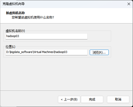 更改虚拟的名字(如hadoop01、hadoop02、hadoop03)、更改虚拟机的安装位置: