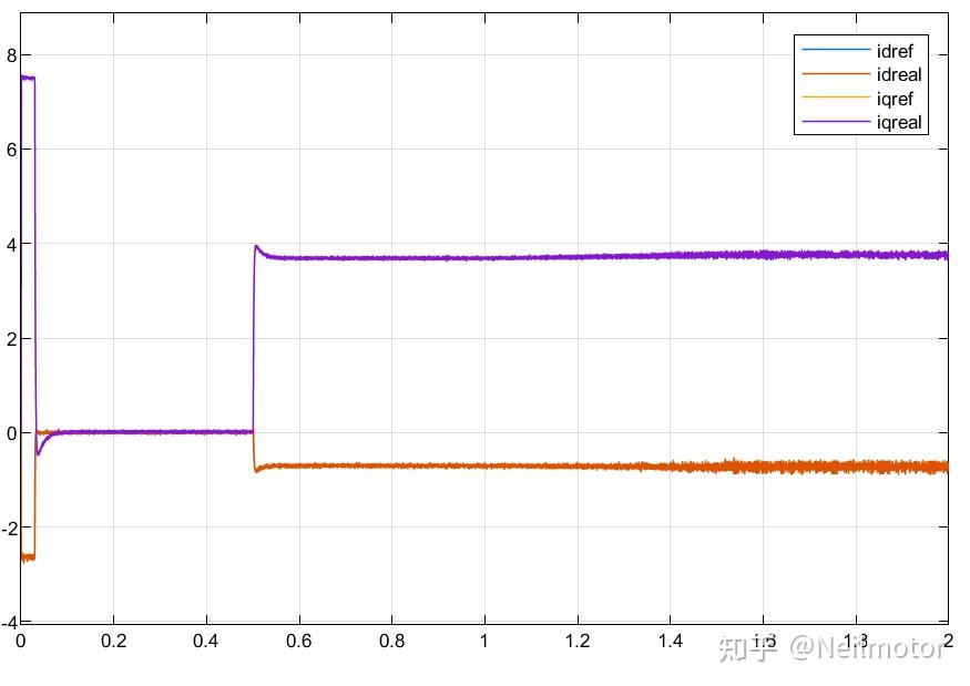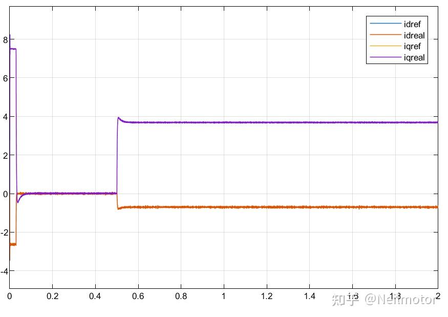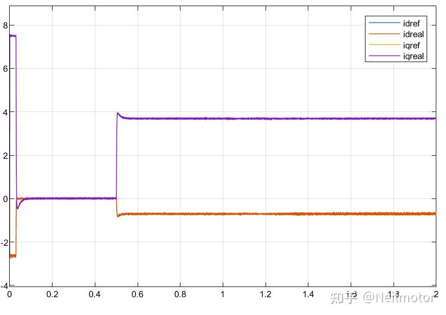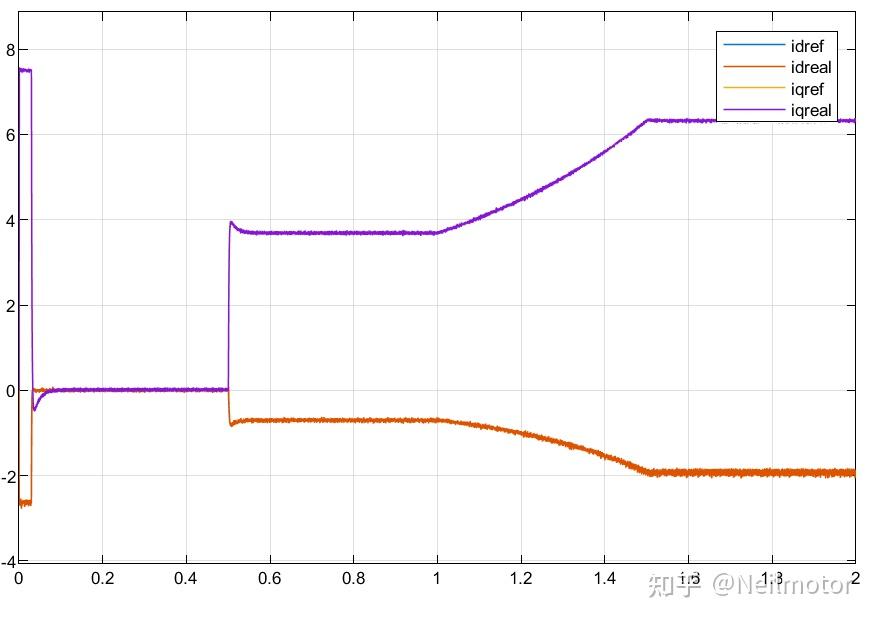 以上波形与使用MATLAB自带电机模型基本一致,电压波动略微是由于电流环带宽设置较大。