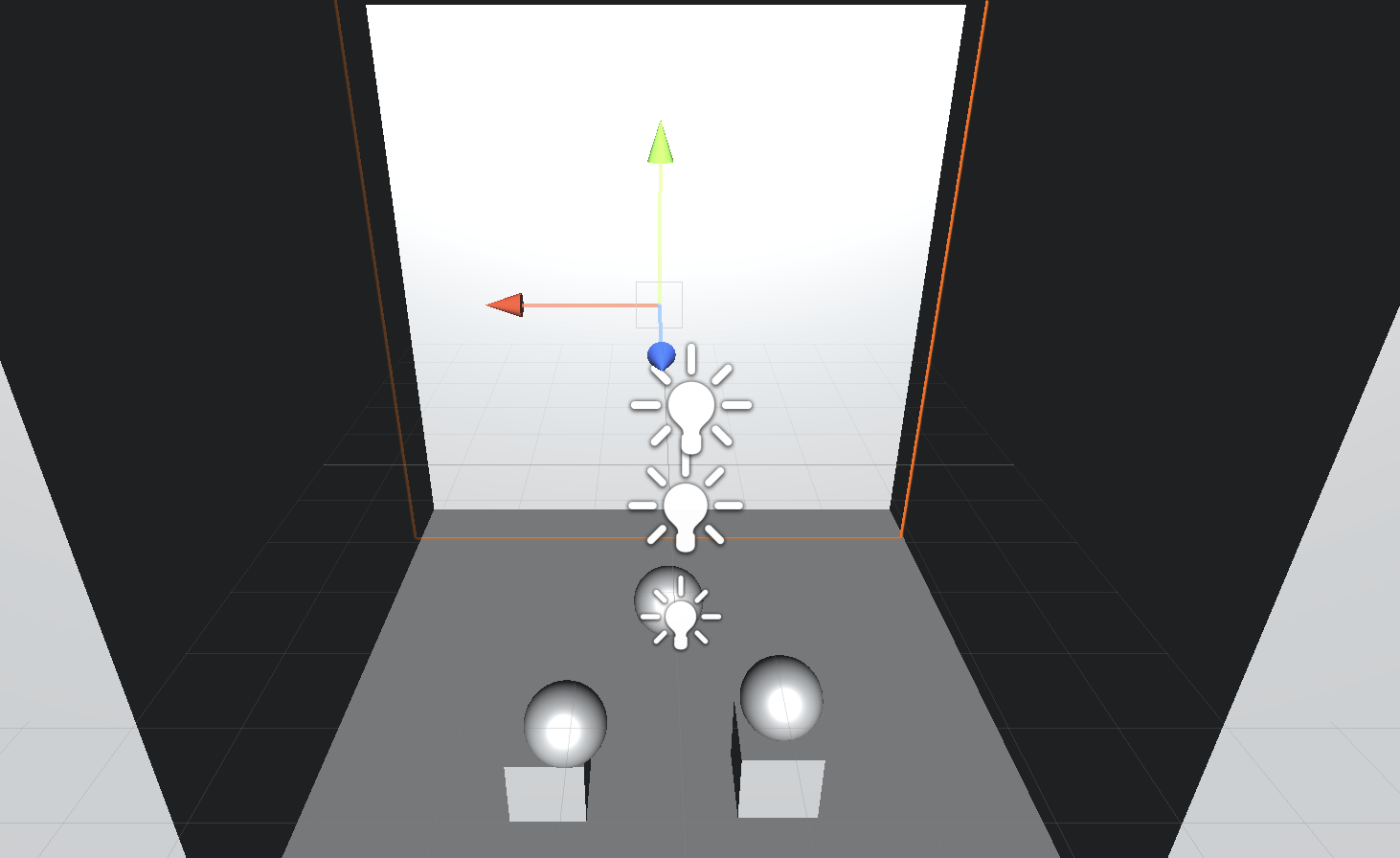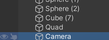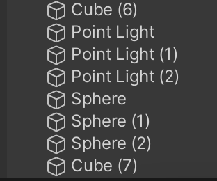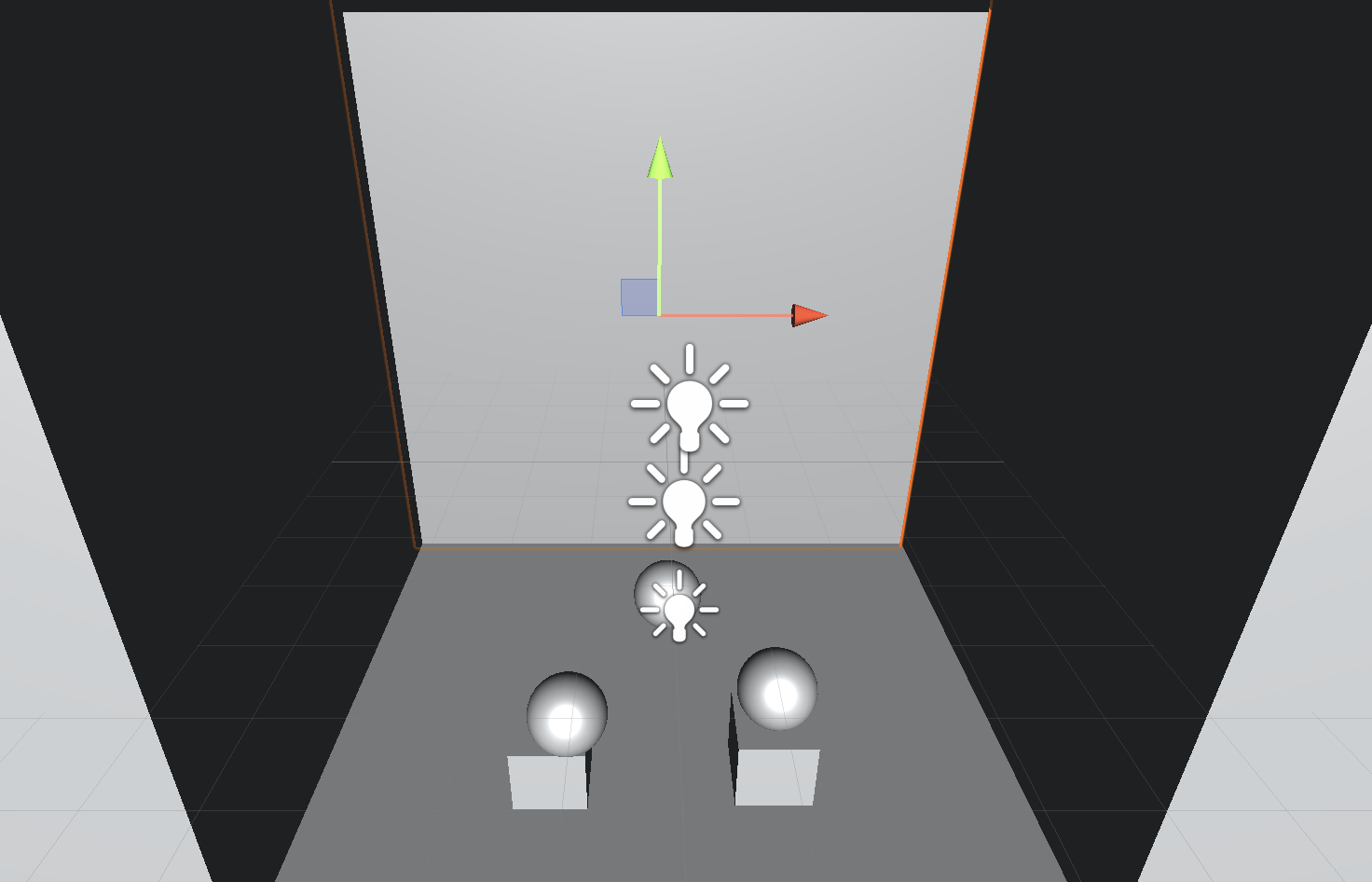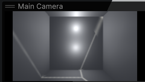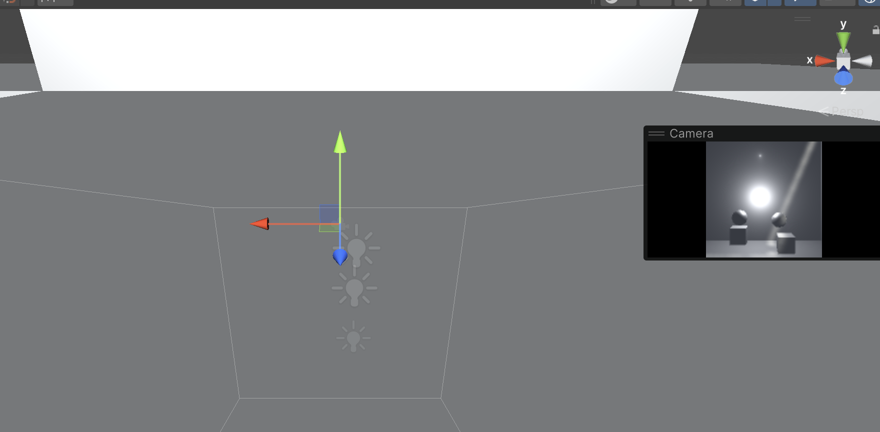 总结一下放置的位置,main camera 是图片中最下面的,视角朝屏幕。camera 是图片中最上面,视角朝自己。三个点光源在一侧,在物体之前,main camera 之后(不一定),quad 在 camera 之前,物体之后,quad 的正面朝向自己。