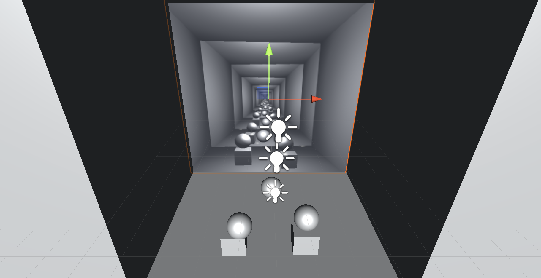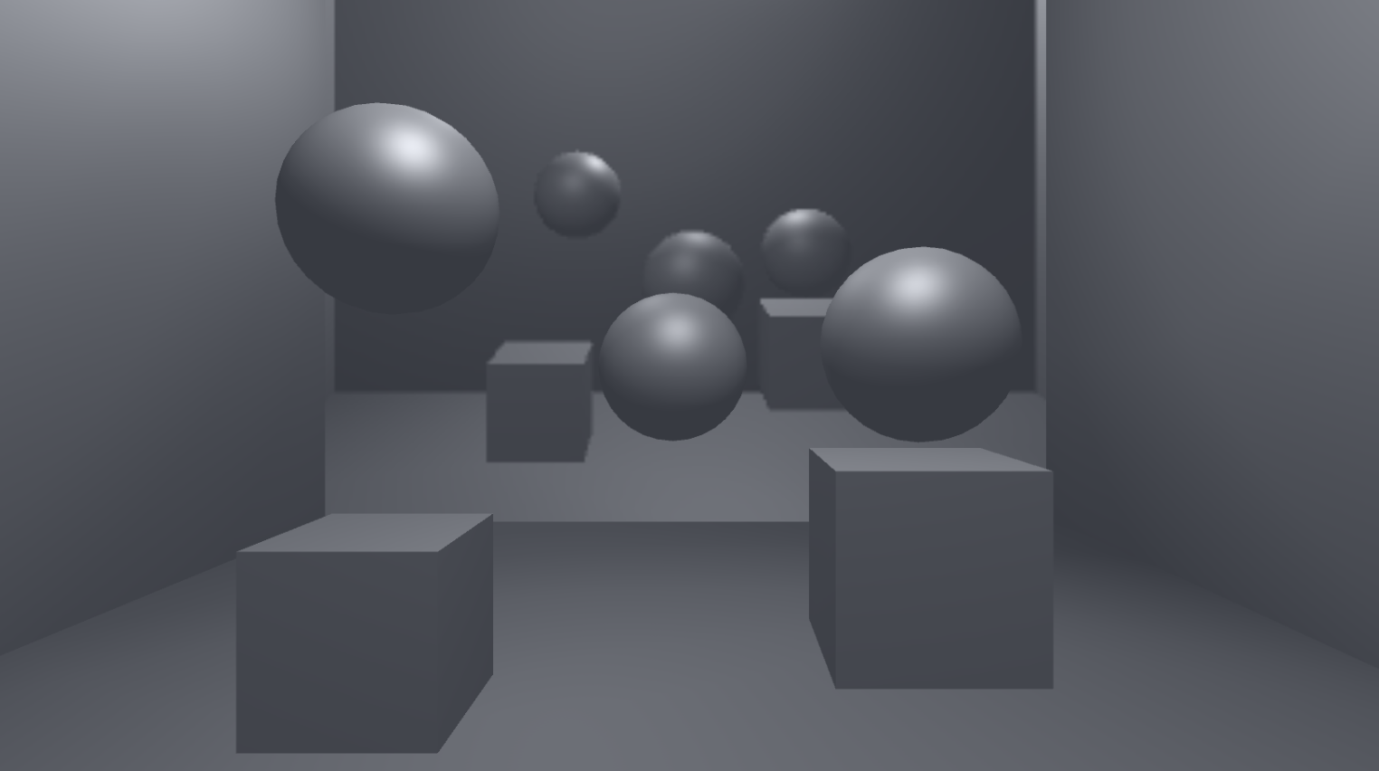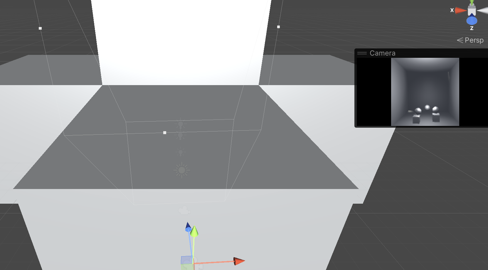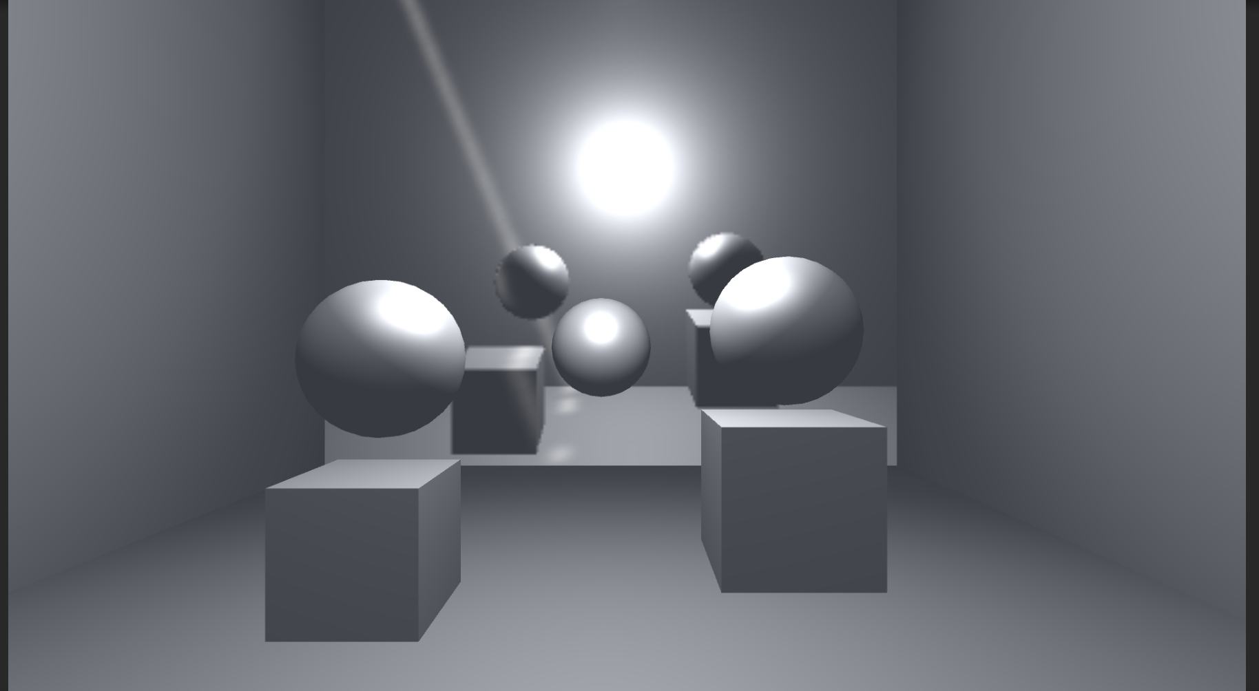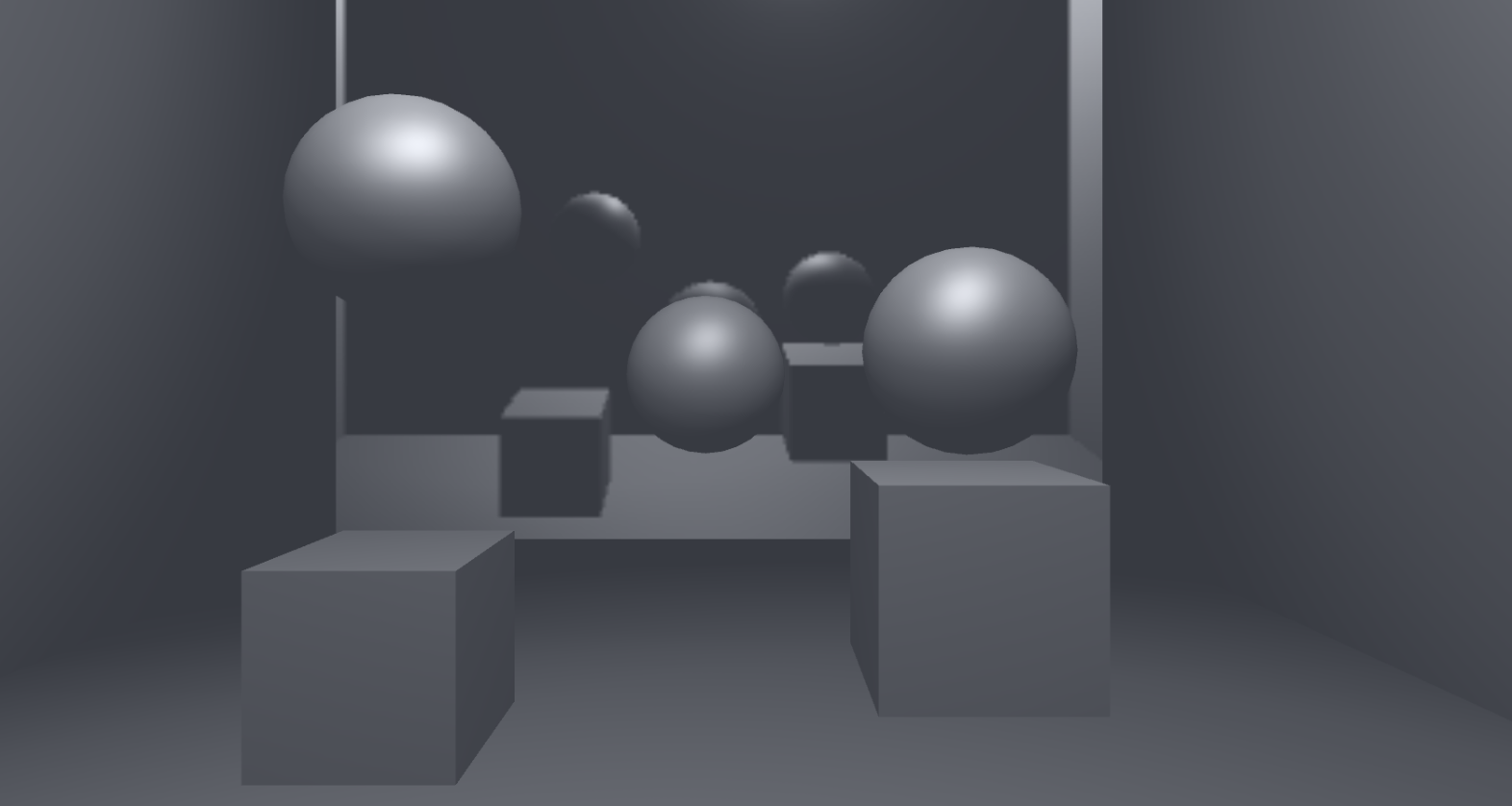 中途感觉房间内还是透光,把六个正方体小小的靠近移动一下,没问题了。调整一下相机的位置,使房间呈现一个比较好的视角。