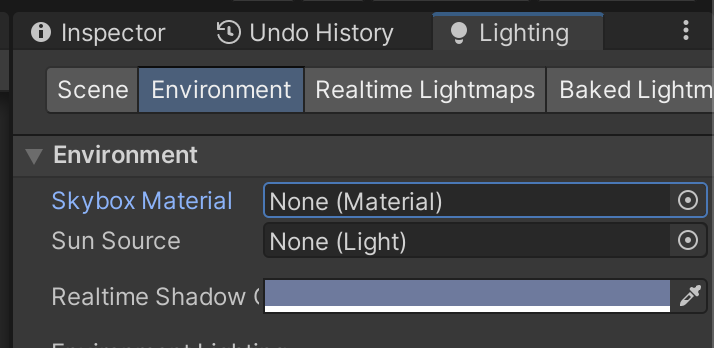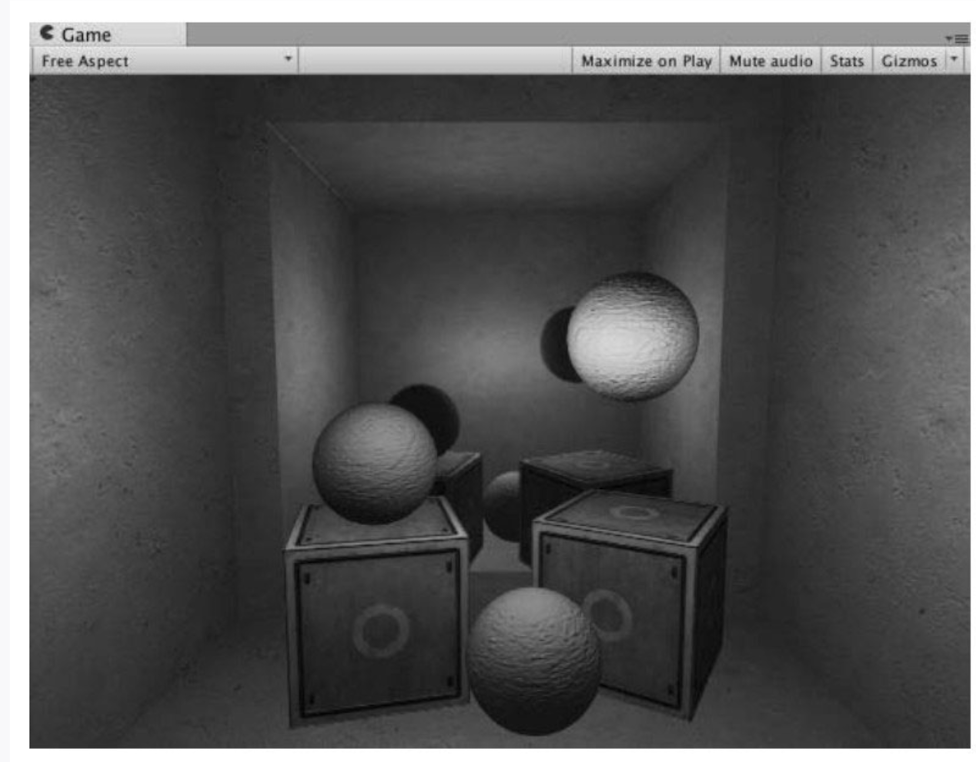 (1)新建一个场景。在本书资源中,该场景名为Scene_10_2_1。在Unity 5.2中,默认情况下场景将包含一个摄像机和一个平行光,并且使用了内置的天空盒子。在Window → Lighting → Skybox中去掉场景中的天空盒子。