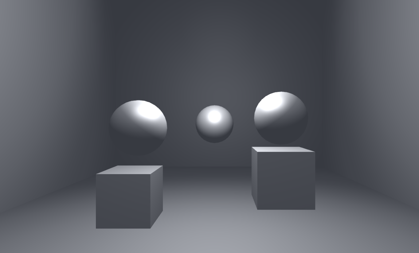 (5)创建3个球体和两个正方体,调整它们的位置和大小,并给它们赋予在9.5节中创建的标准材质。这些物体将作为房间内的饰品。