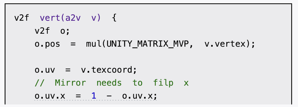 在上面的代码中,我们翻转了x分量的纹理坐标。这是因为,镜子里显示的图像都是左右相反的。