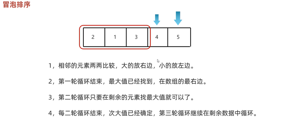 //第一层for循环是依次拿出数组的每个元素(最后一个不用拿,因为前面的排完了,最后一个肯定是最大了)