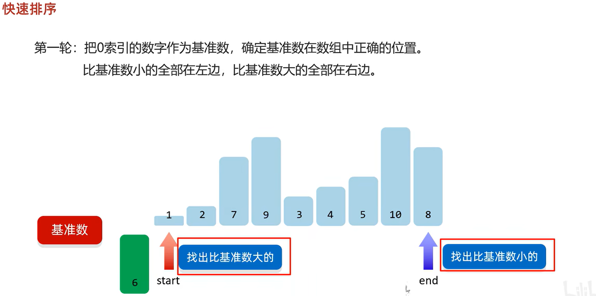 //利用start从前往后找比基准数大的数字