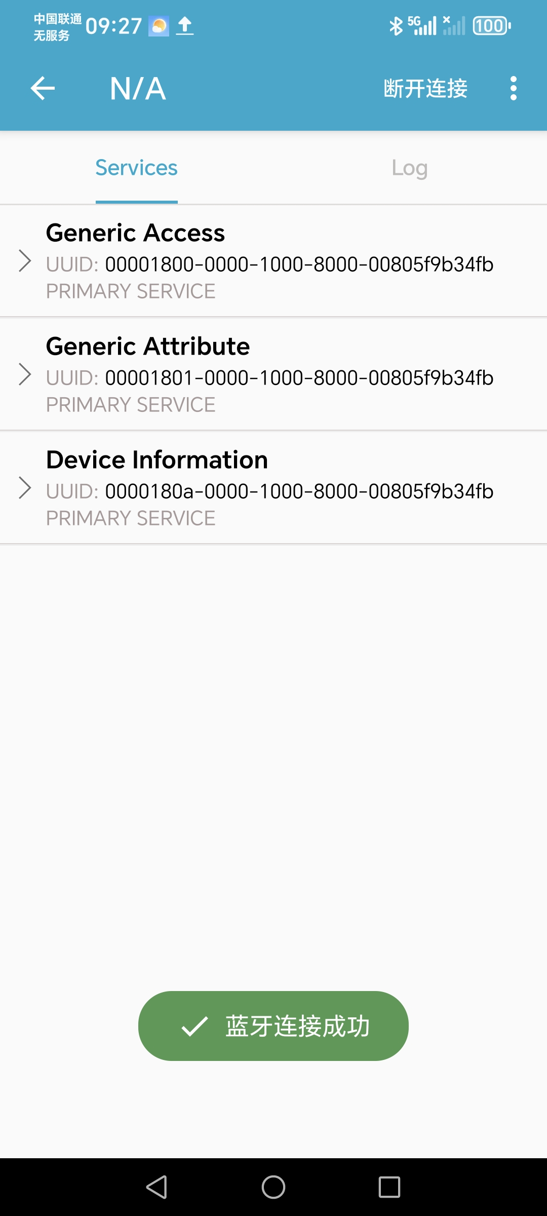 手机下载BLE蓝牙调试助手,并在手机上搜索设备并连接