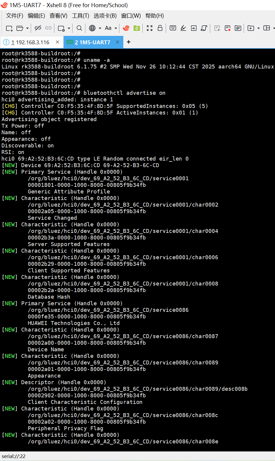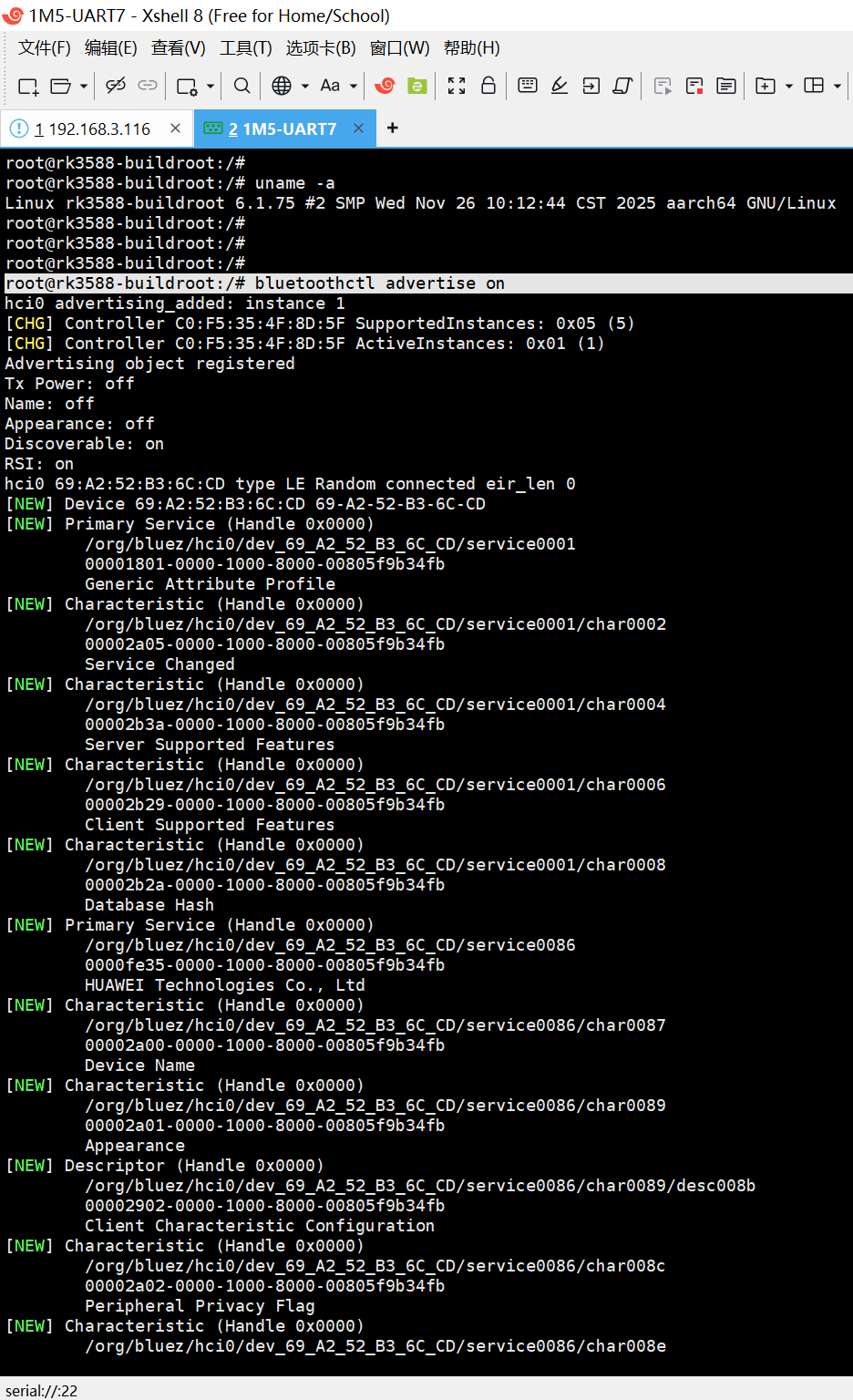 20251129给荣品RD-RK3588开发板跑Rockchip的原厂Buildroot【linux-6.1】系统时适配AP6275P的蓝牙BLE