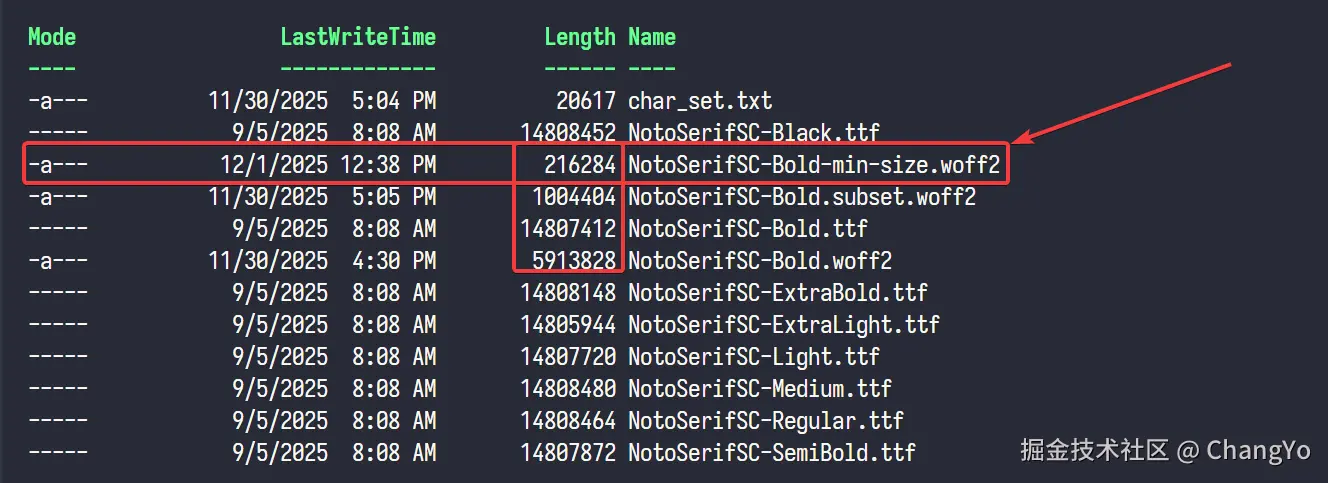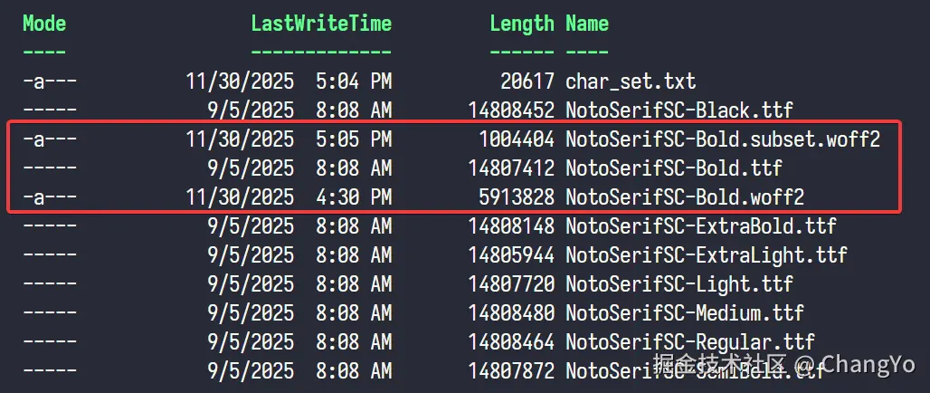 过一会就能看到会输出一个NotoSerifSC-Bold.subset.woff2的文件。